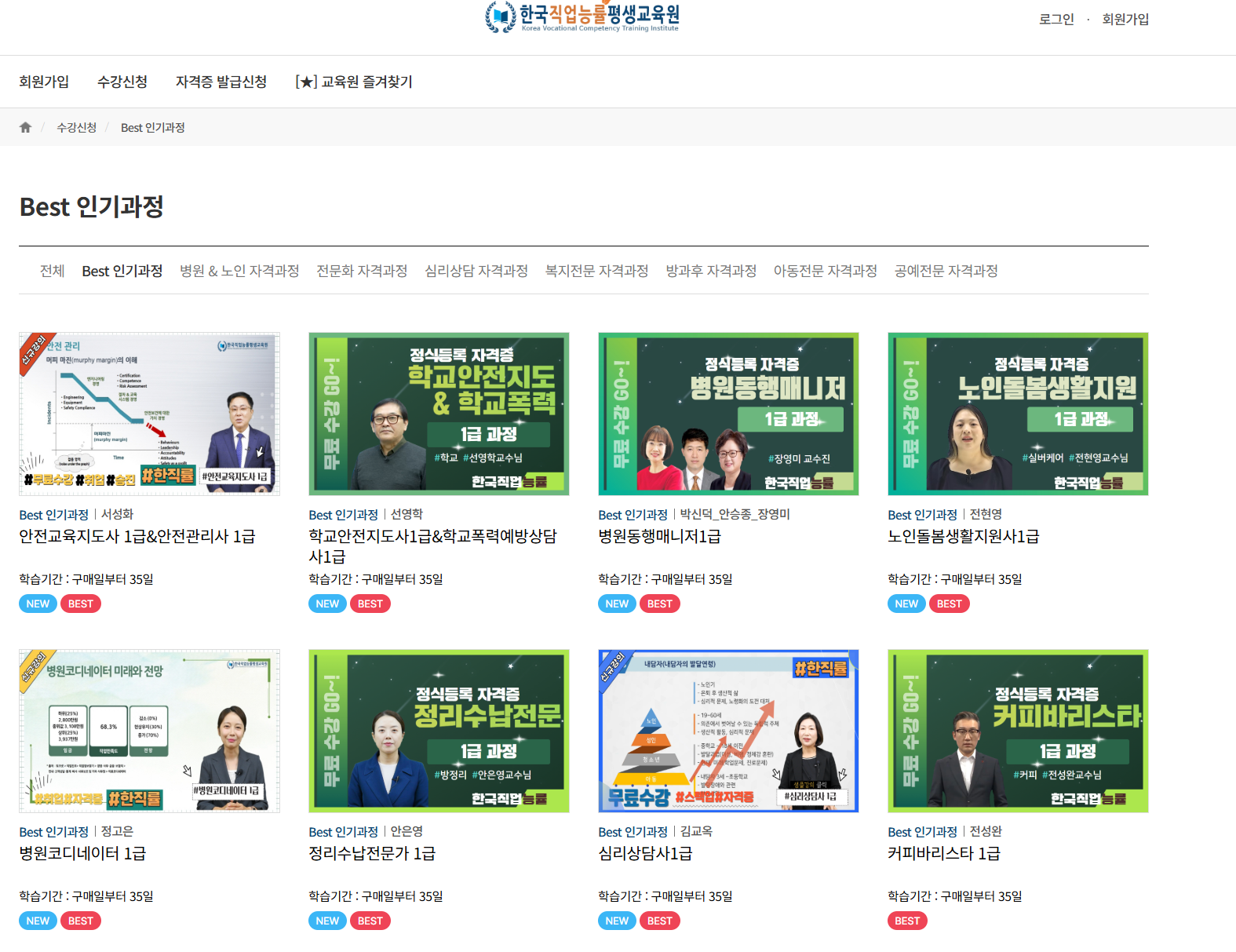 직업능률 | 교육청 시설인가교육원 | 전 과정 정식등록 | 민간자격증, 무료자격증